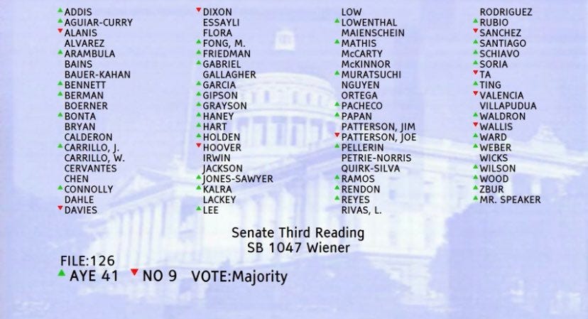 SB 1047 has passed the Assembly, by a wide majority.